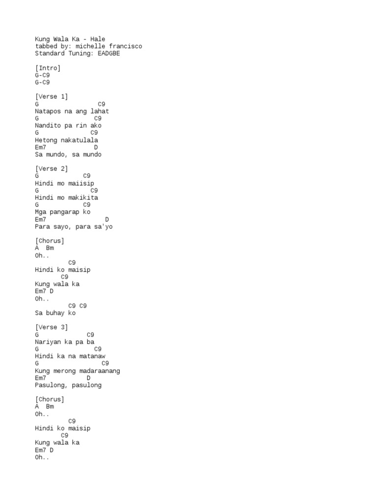 EADGBE Intro C - F9 C - F9 Verse 1 C F9 Natapos na ang lahat C F9 Nandito pa rin ako C F9 Hetong nakatulala Am7 G Sa mundo sa mundo Verse 2 C F9 Hindi mo maiisip C F9 Hindi. These are the guitar chords Ive. Kung Wala Ka Guitar Tutorial - Hale Tutorial by AcousticGroundTuning.